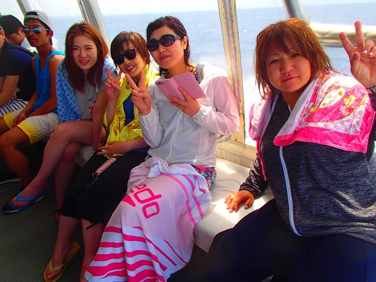 はい♪こちらも帰りの船内です(^ム^)女子が集まると華がありますね♪